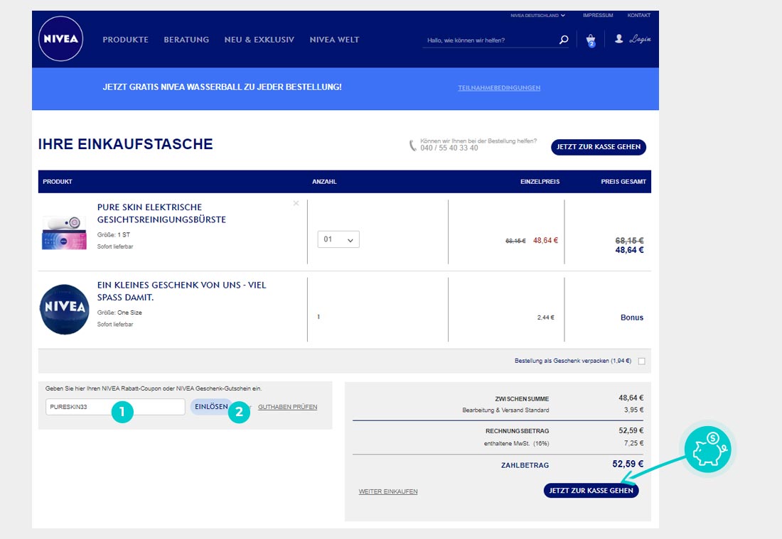 Mehr erfahrenWissen Sie nicht genau, wie die Einlösung des Gutscheincodes bei Nivea.de funktioniert? Wir bieten Ihnen eine Anweisung, wie Sie die Gutscheincodes schnell und vor allem einfach einlösen können: